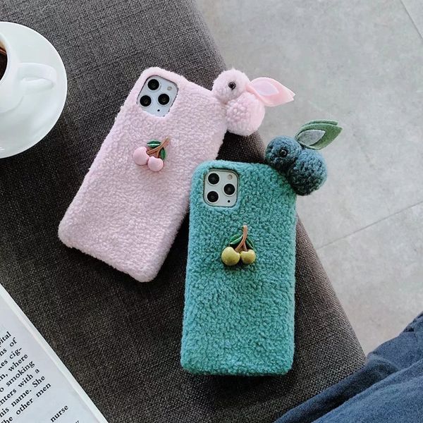 3d Cherry Rabbit Fluffy Case For Iphone 11 Pro Max Xr Xs Max X 7 8 6 Plus Hair Fur Girl Cute Soft Tpu Cartoon Back Cell Phone Covers Luxury Rhinestone